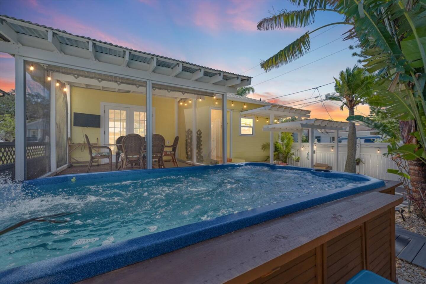 Private Old Florida retreat in downtown Tarpon Springs, just steps from the Sponge Docks. This stay includes both the main house and a fully detached guest house, perfect for families or groups wanting space and privacy. Enjoy the outdoor swim spa, relax after a day out, or walk to restaurants, shops, coffee spots, breweries, and the waterfront. A golf cart is available on-site for rent, making it easy and fun to explore the area.
